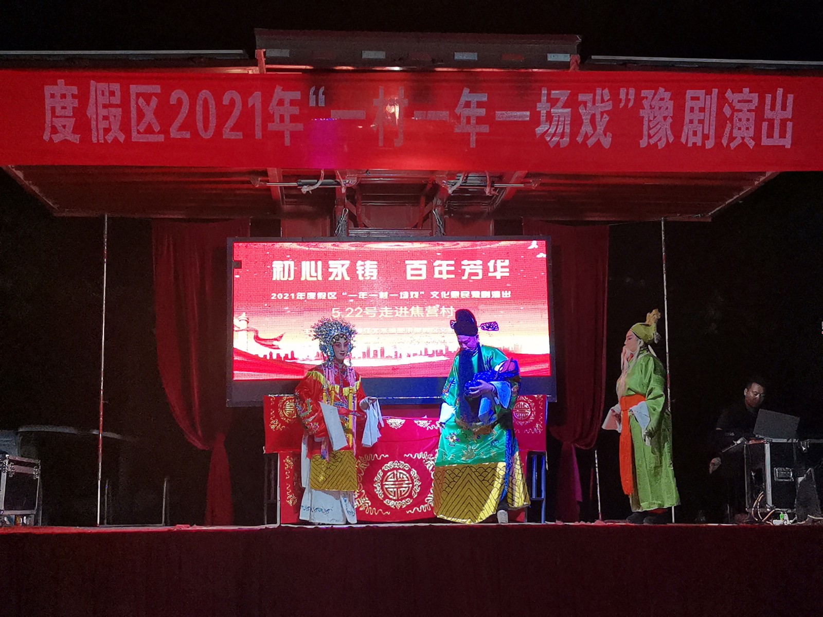 5月22日晚,度假区一村一年一场戏送戏下乡豫剧专场走进朱老庄镇焦营村,演出剧目《桃花庵》,观众200人。