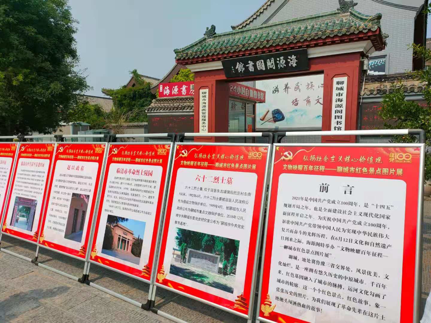 6月12日,是文化和自然遗产日,海源阁图书馆在观前街广场举办了以“文物映耀百年征程”为主题的红色革命旧址文物图片展。
