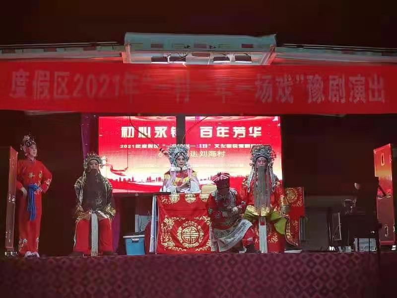 6月4日晚,度假区一村一年一场戏豫剧专场走进朱老庄镇刘海村,演出剧目《穆桂英挂帅》。