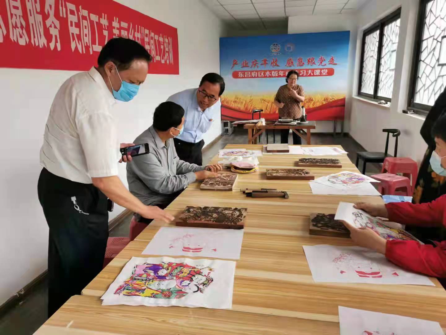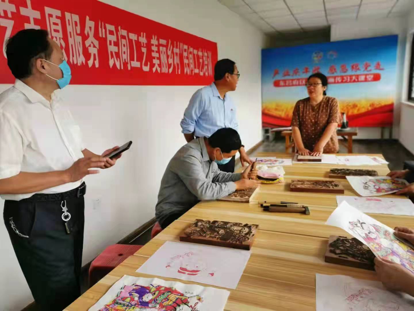 近日,阳谷县文化馆副馆长杨风华参加“民间工艺 美丽乡村”民间工艺培训项目,为学员指导木板年画制作。