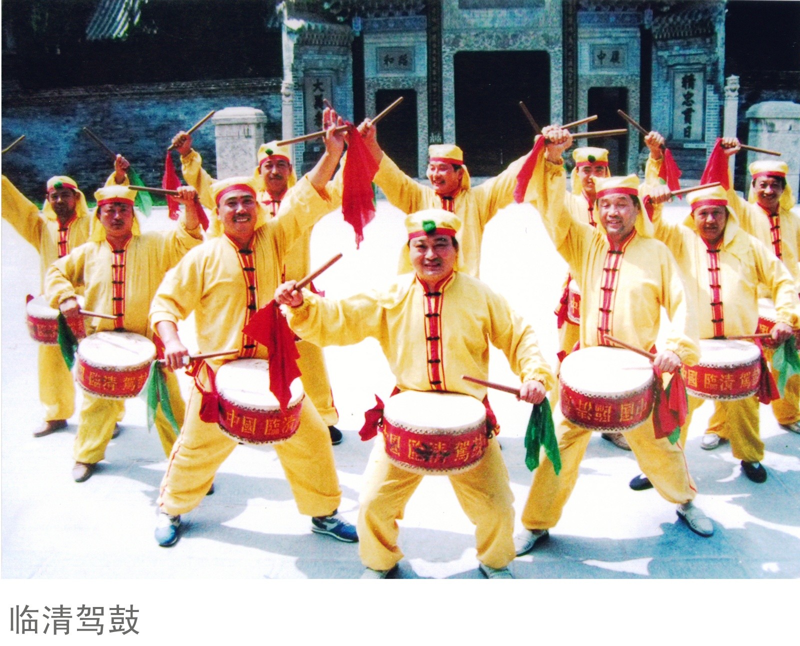 临清驾鼓,原名羯鼓,相传是我国西北部少数民族羯族的一种娱乐工具。后通过佛教传播,把羯鼓传到内地,后由于明清时期大运河的兴盛,临清地处运河之岸,水陆交通方便,羯鼓就由此传入临清,并由临清当地人的传承发展,而形成了现在的驾鼓。自唐代以来,临清庙宇兴建甚多,庙会频繁,各庙会分别组织驾鼓会,清代末期由于战乱等原因,驾鼓队逐渐衰落。
