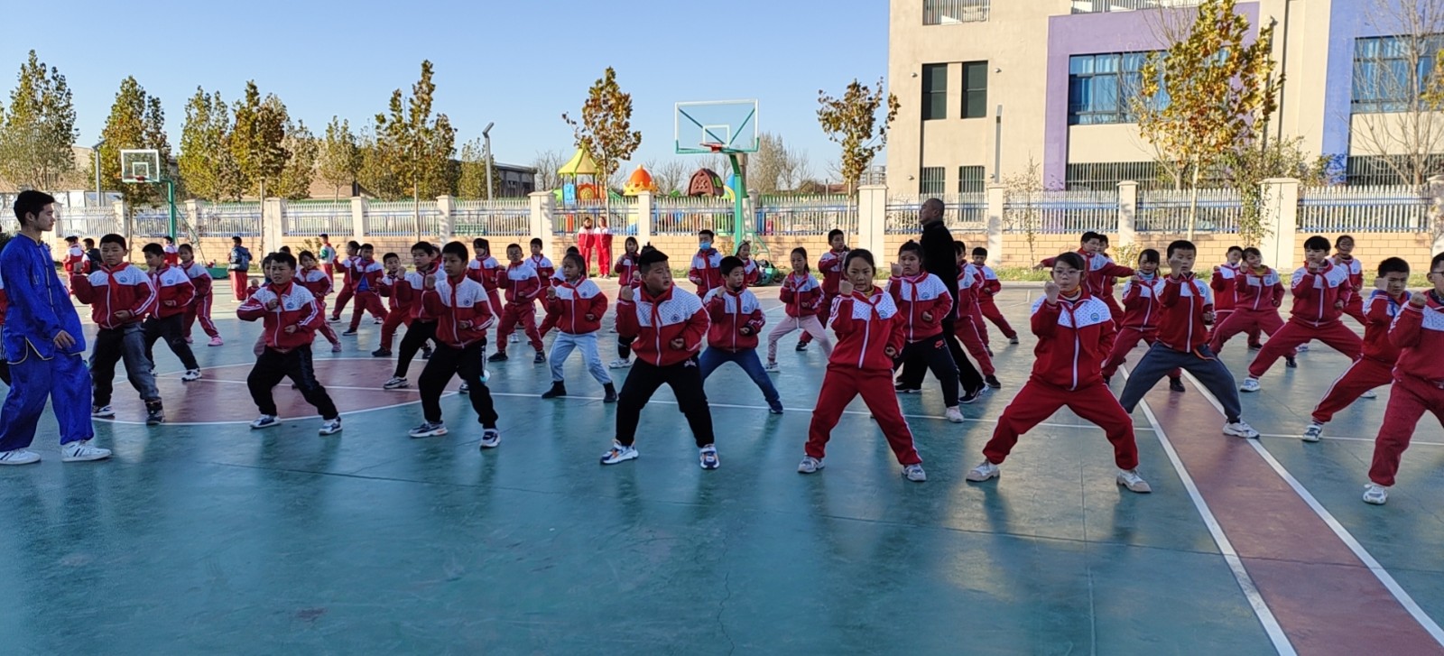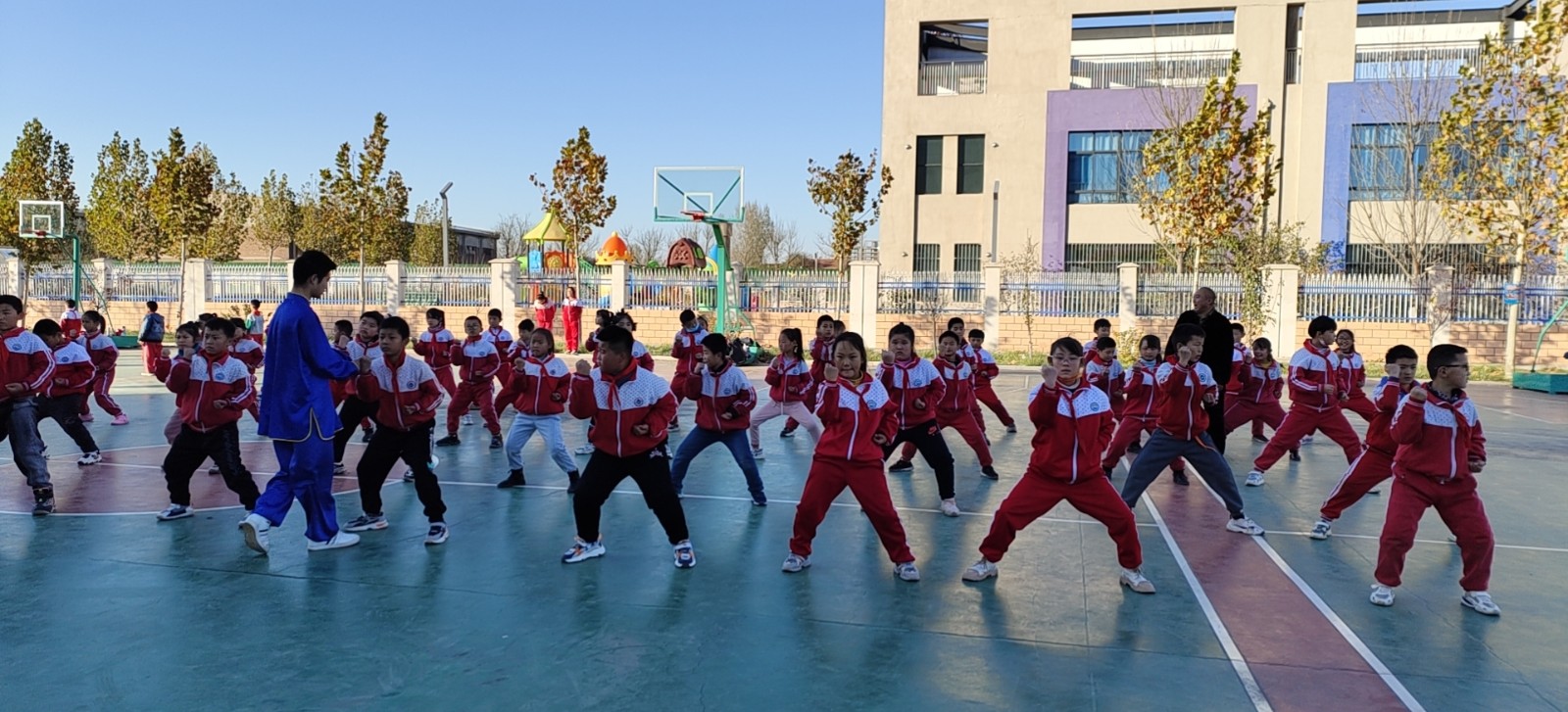 【度假区】11月11日,非遗项目二郎拳走进李海务街道小学为小朋友公益培训。