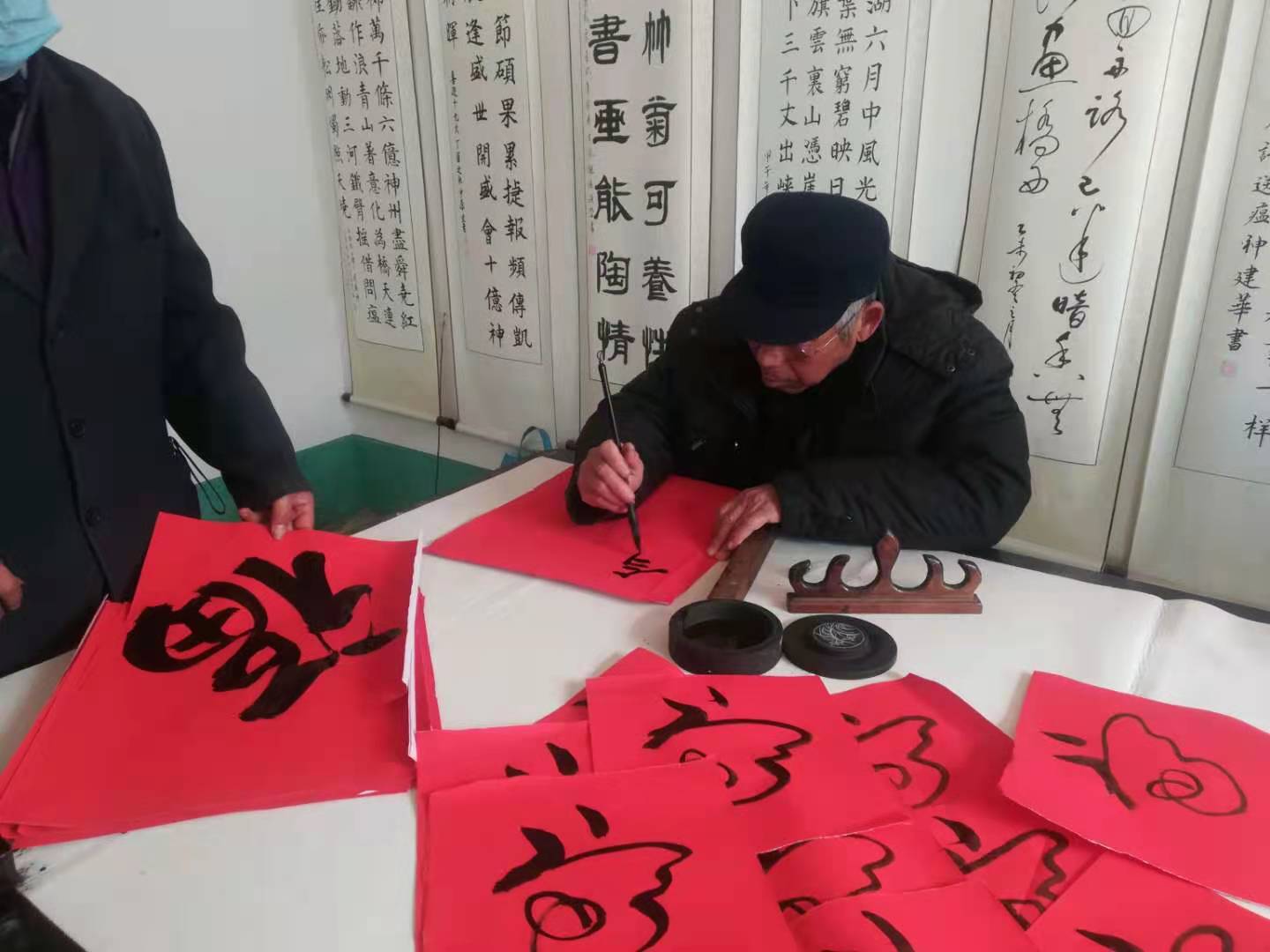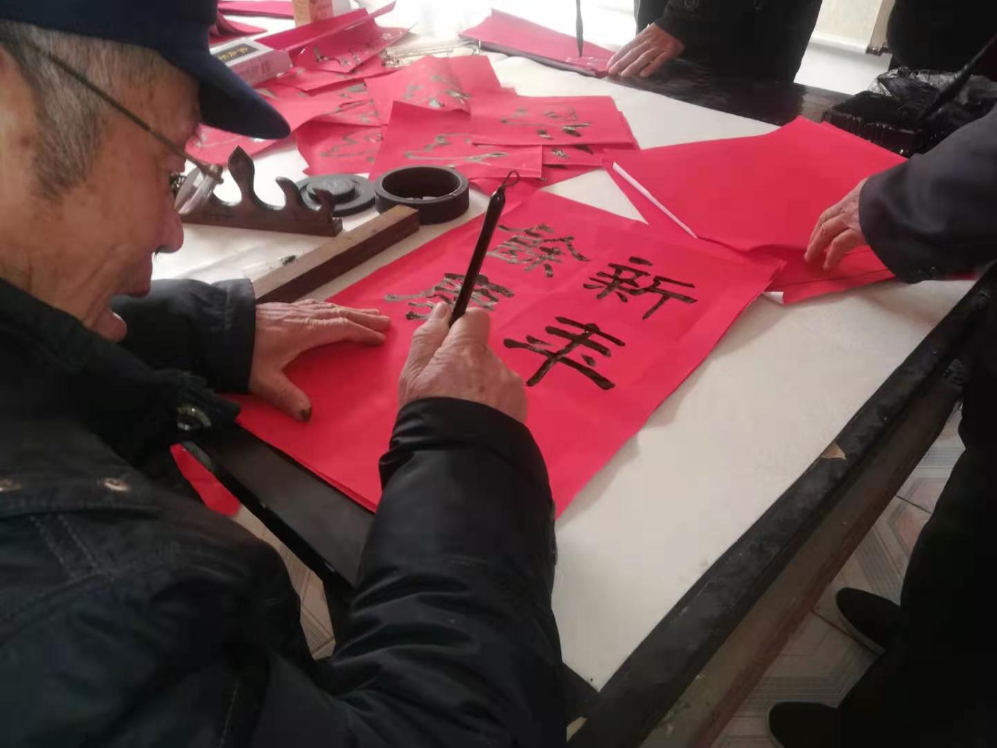 在春节来临之际,阎楼镇组织老年书法协会举办“春联送万家”活动,协会的老同志们挥毫泼墨,书写春联赠送给群众,也送去关怀和祝福。