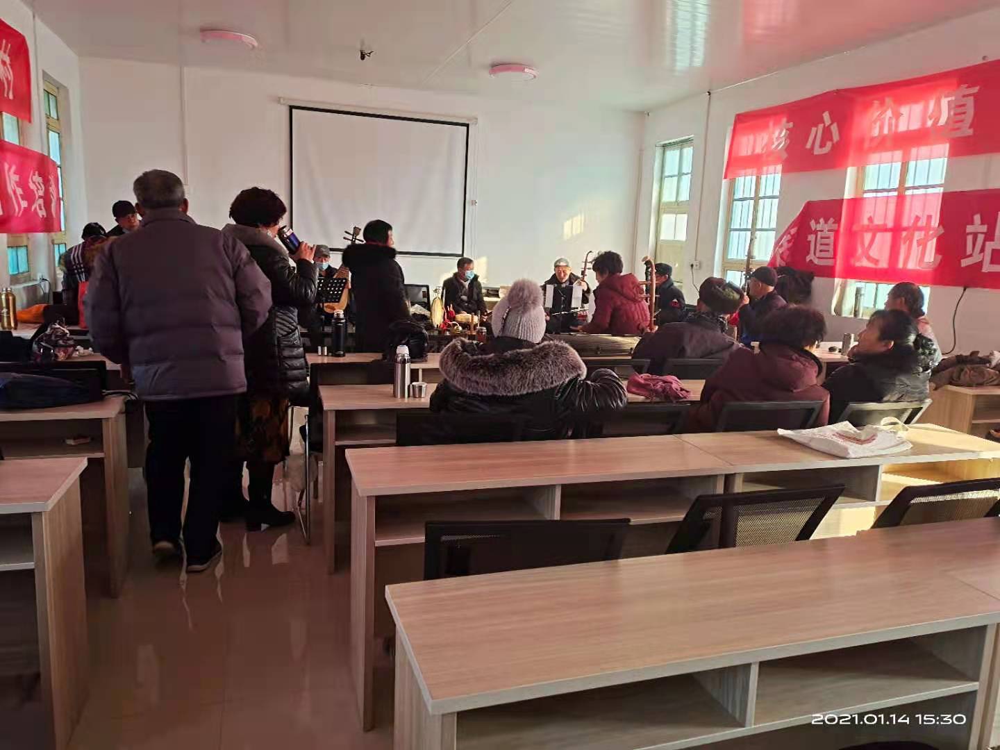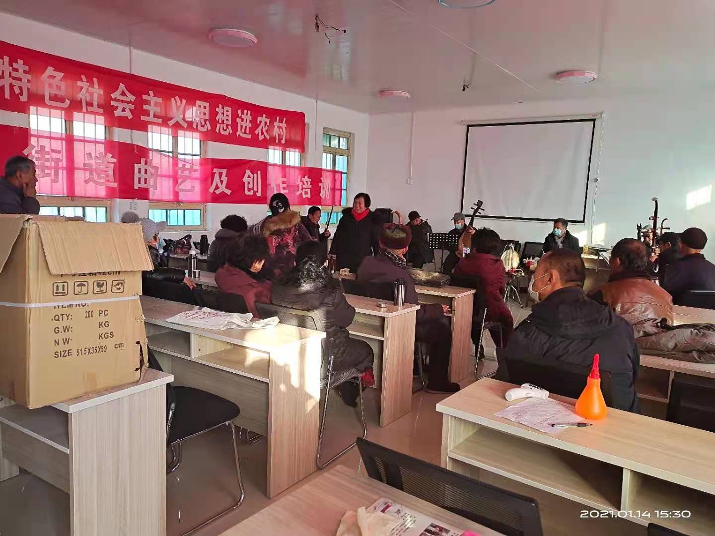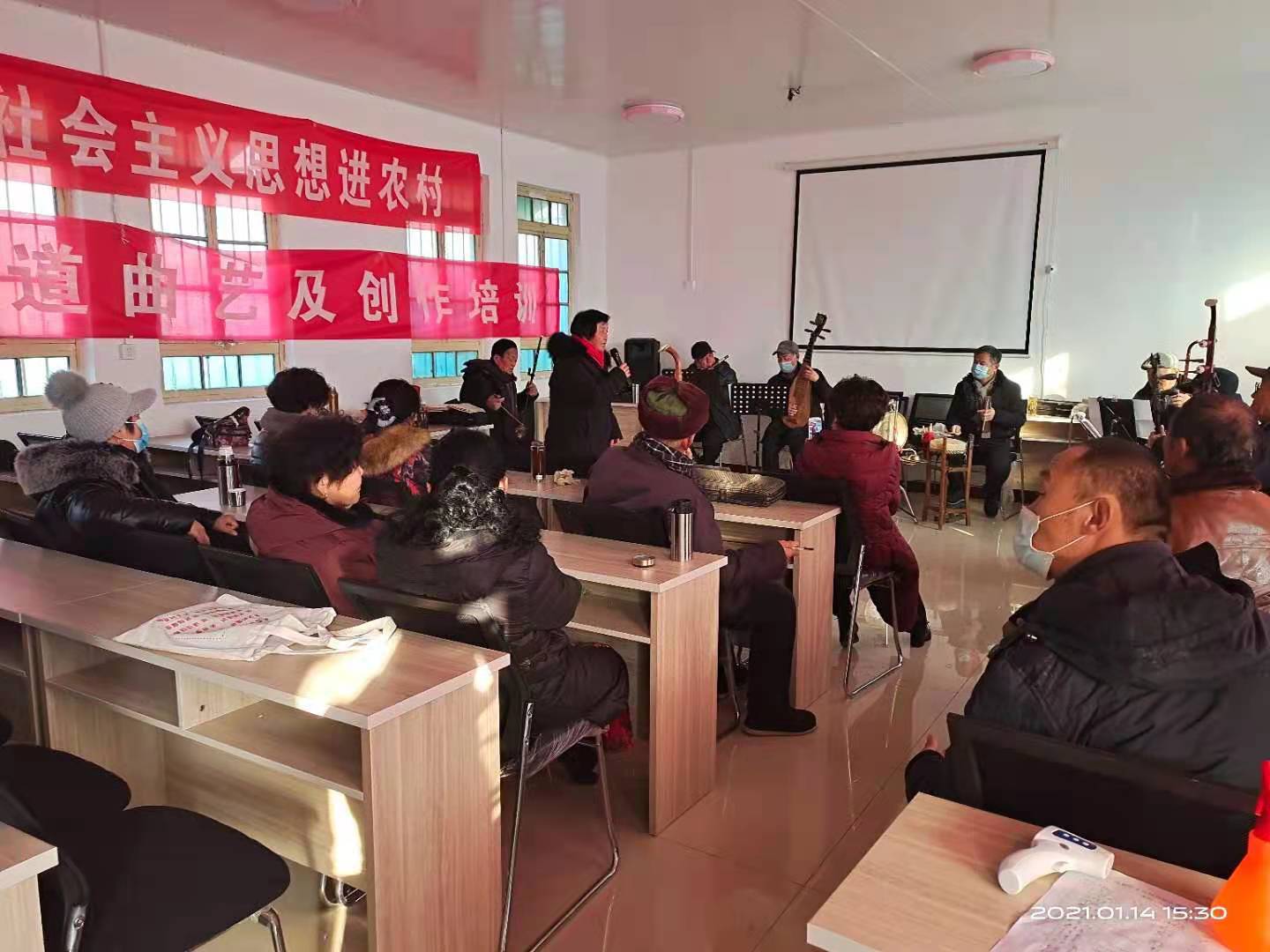 1月14日下午在李海务文化站培训室举办了曲艺培训活动,街道辖区各位曲艺爱好者齐聚文化站进行交流学习。