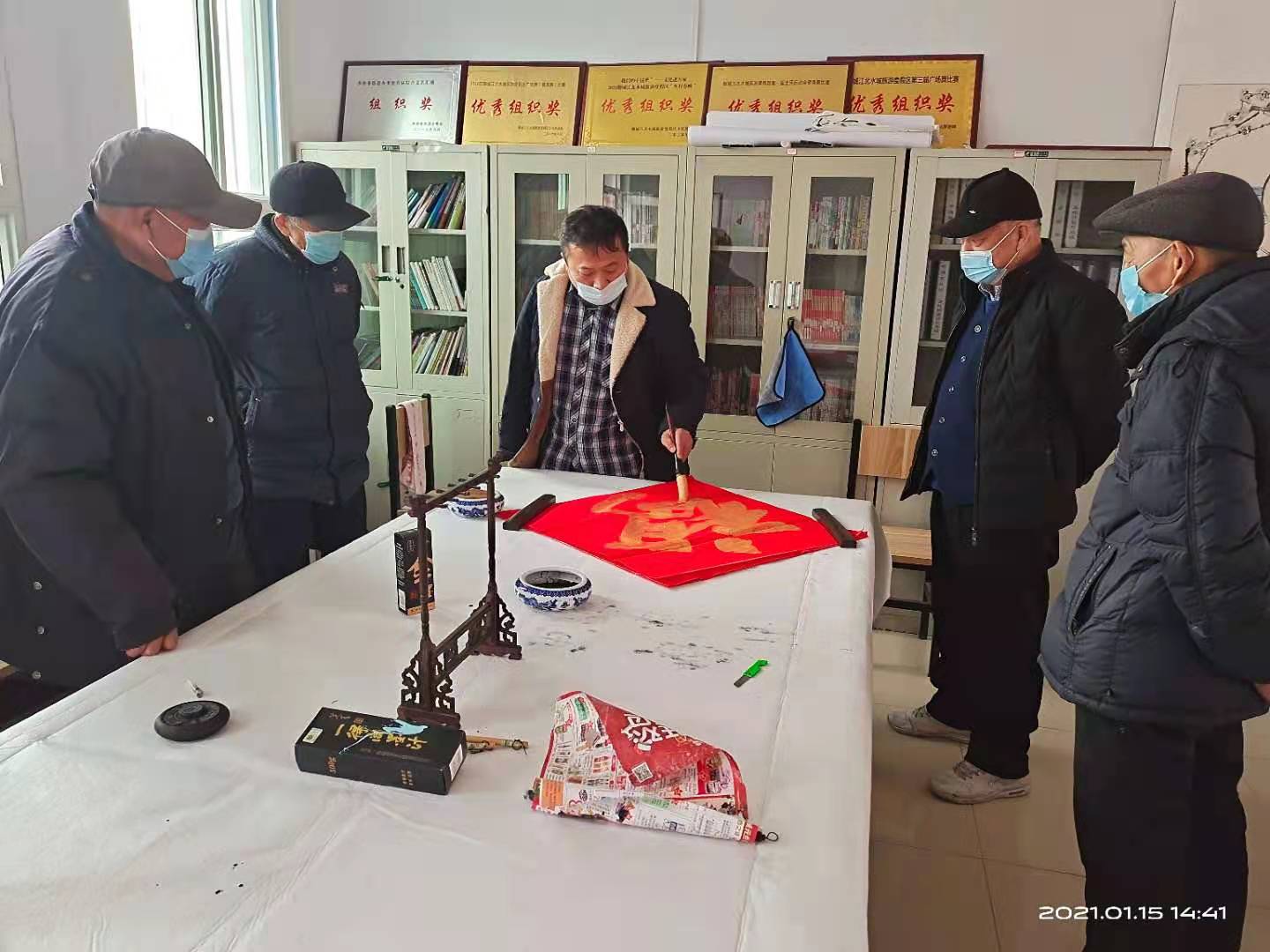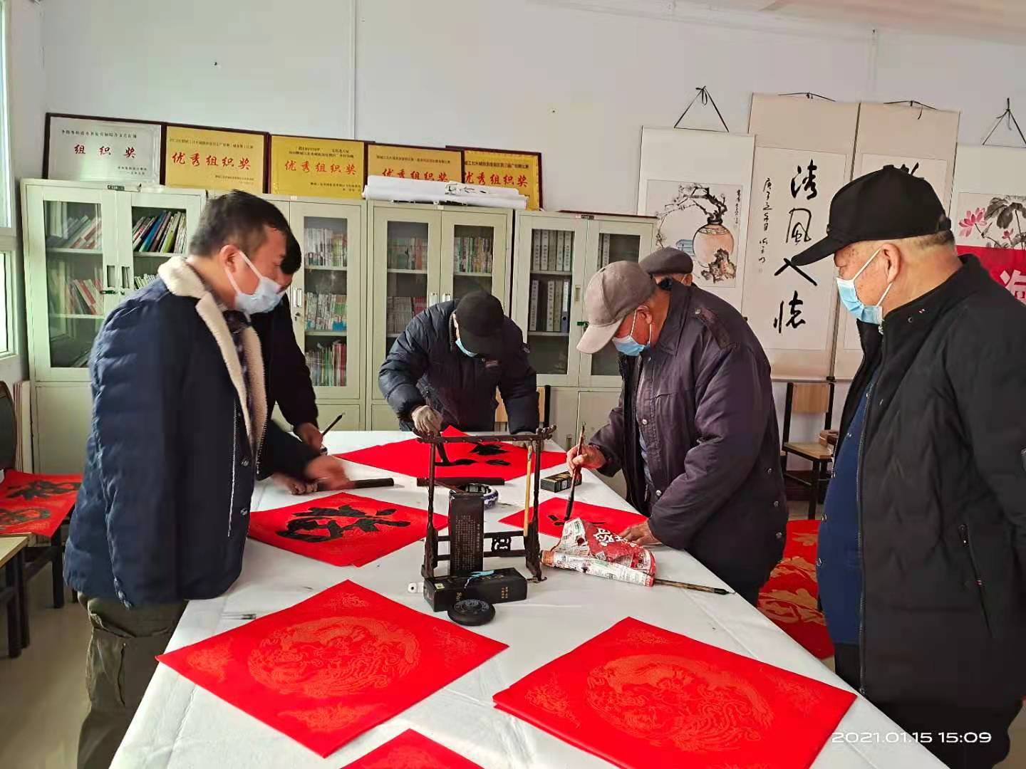 1月15日在李海务街道文化站举办了书法交流学习,由宋西彬老师和郝怀奎老师进行指导,前来学习的有李海务辖区内各位书法爱好者。