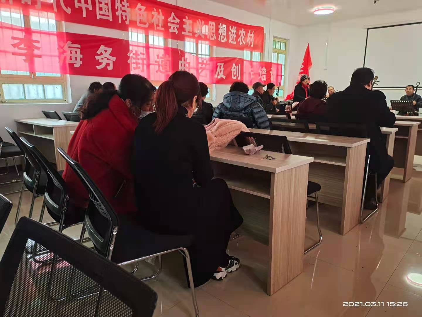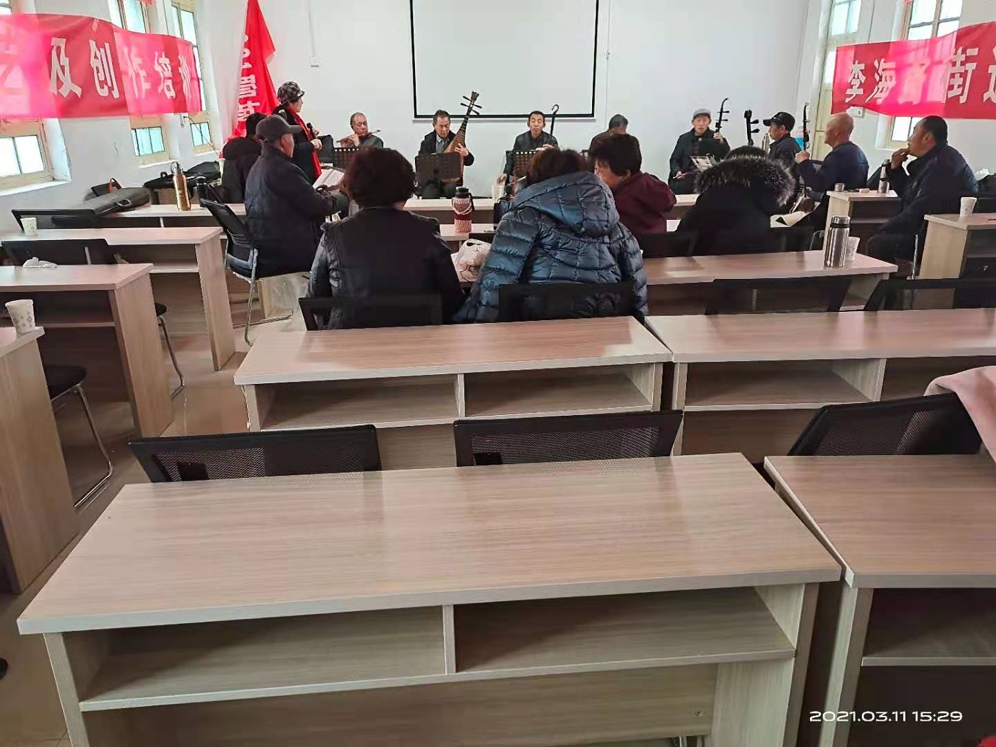 2021年3月11日在李海务街道文化站培训室举办了曲艺培训,各村吹拉弹唱的文艺骨干和曲艺爱好者相约在一起,相互交流学习,大家玩的非常开心。