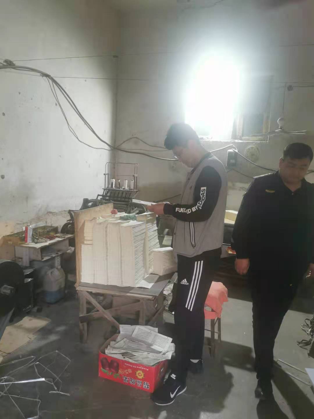 4月14日,与县执法局工作人员联合查处非法印刷企业。
